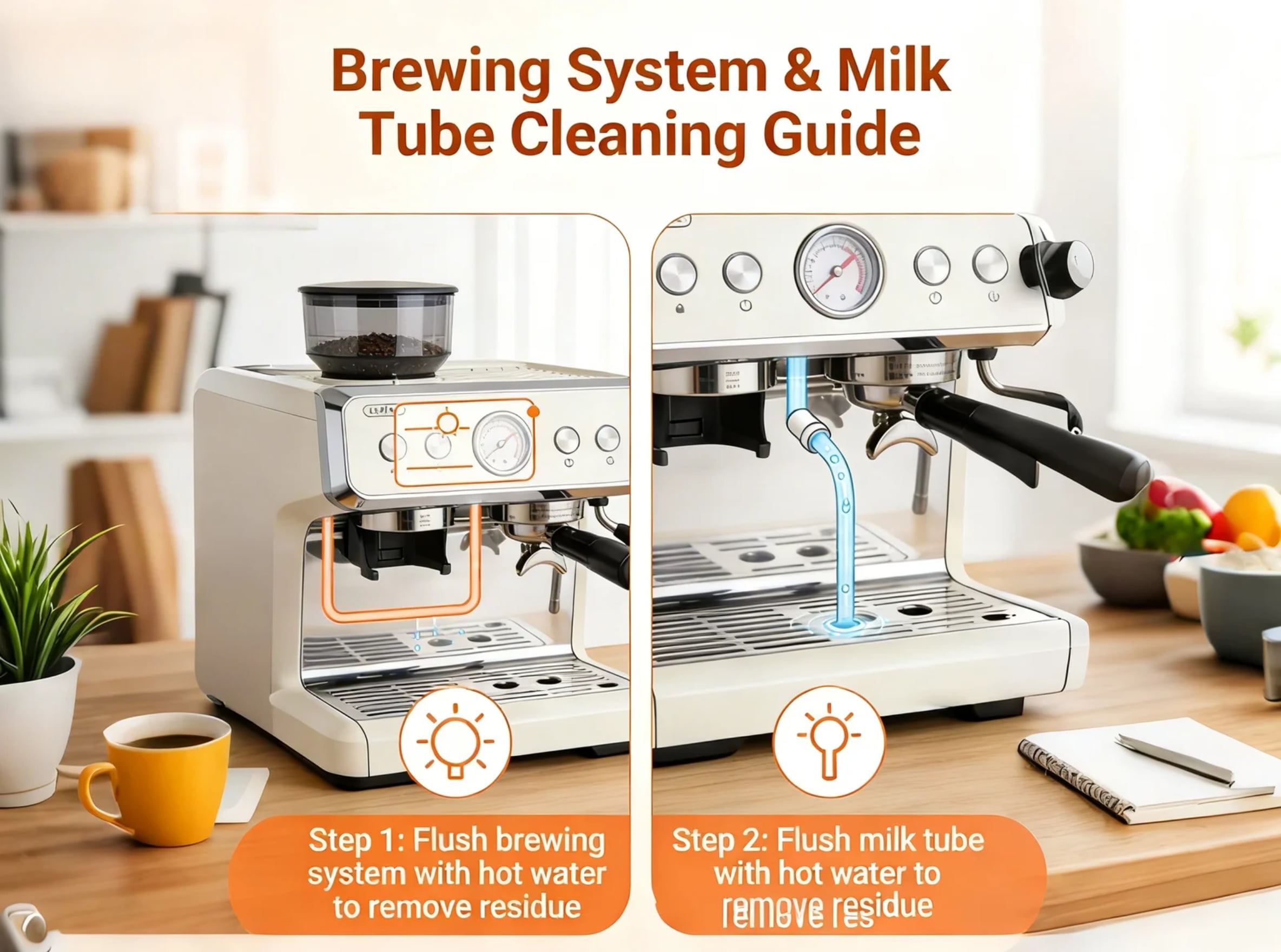 Automated cleaning cycles activate on startup and shutdown, flushing the brewing system with hot water to remove residue. This feature reduces manual cleaning frequency and ensures optimal taste with every cup.